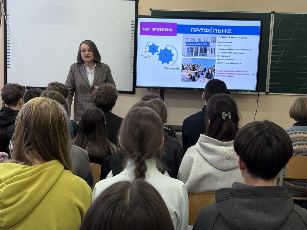 У закладах загальної середньої освіти Славутської міської територіальної громади працівники  провели Управління освіти, Центру професійного розвитку педагогічних працівників мотиваційні зустрічі з учнями 9-х класів щодо  пілотування трирічної профільної старшої школи, яке розпочнеться з 1 вересня 2026 року.