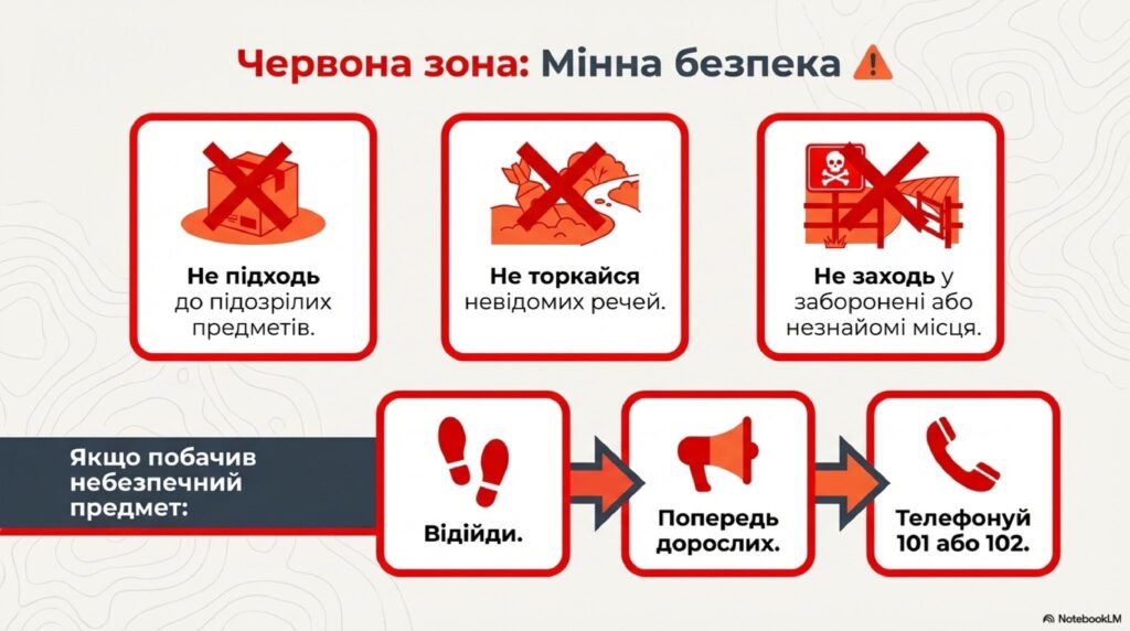 у разі виявлення – негайно повідомте дорослих або зателефонуйте 101 / 102